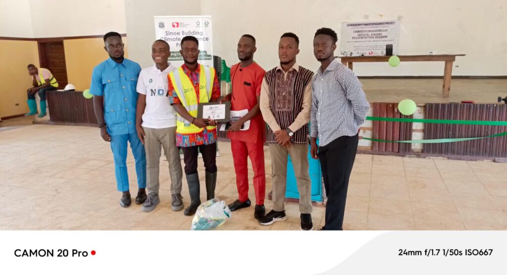 As part of the launch and awards ceremony, SBCRP presented working materials to Eco Track Solutions, the waste management group collaborating with the project in Sinoe County. Items presented included two tricycles, eight wheelbarrows, two computers, jackets, rainboots, and other essential working tools. The materials were officially received by Mr. Dennis Koon, Head of Eco Track Solutions, who expressed gratitude for the support and reaffirmed his team’s commitment to effective waste management services in the county.
